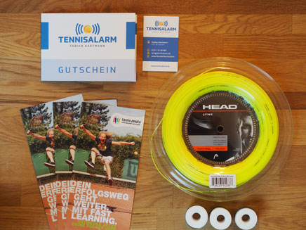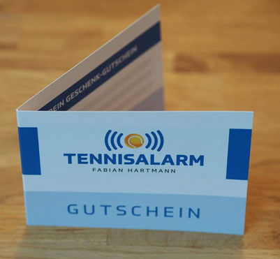 Mit einem Gutschein von TENNISALARM für Fast-Learning-Kurse, Besaitungsservice, Tennistraining u.v.m. hast Du das ideale Geschenk gefunden.